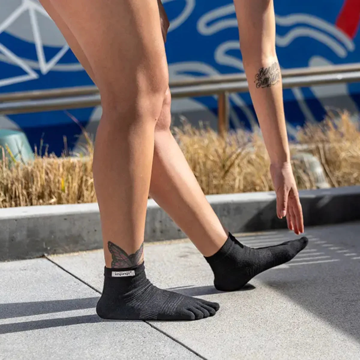The Injinji Run Lightweight Mini Crew Toe socks are engineered to perform on all surfaces. Injinji's lightest weight running sock delivers high-quality performance without the bulk. The innovative five-toe design prevents blisters, manages moisture, and promotes total foot utilisation–whether you are running a marathon or around the block. Lightweight fibers and arch support enhance comfort, while the Mini-Crew height provides ankle-high debris protection. Made for the miles, this performance running sock will level up your endurance game.